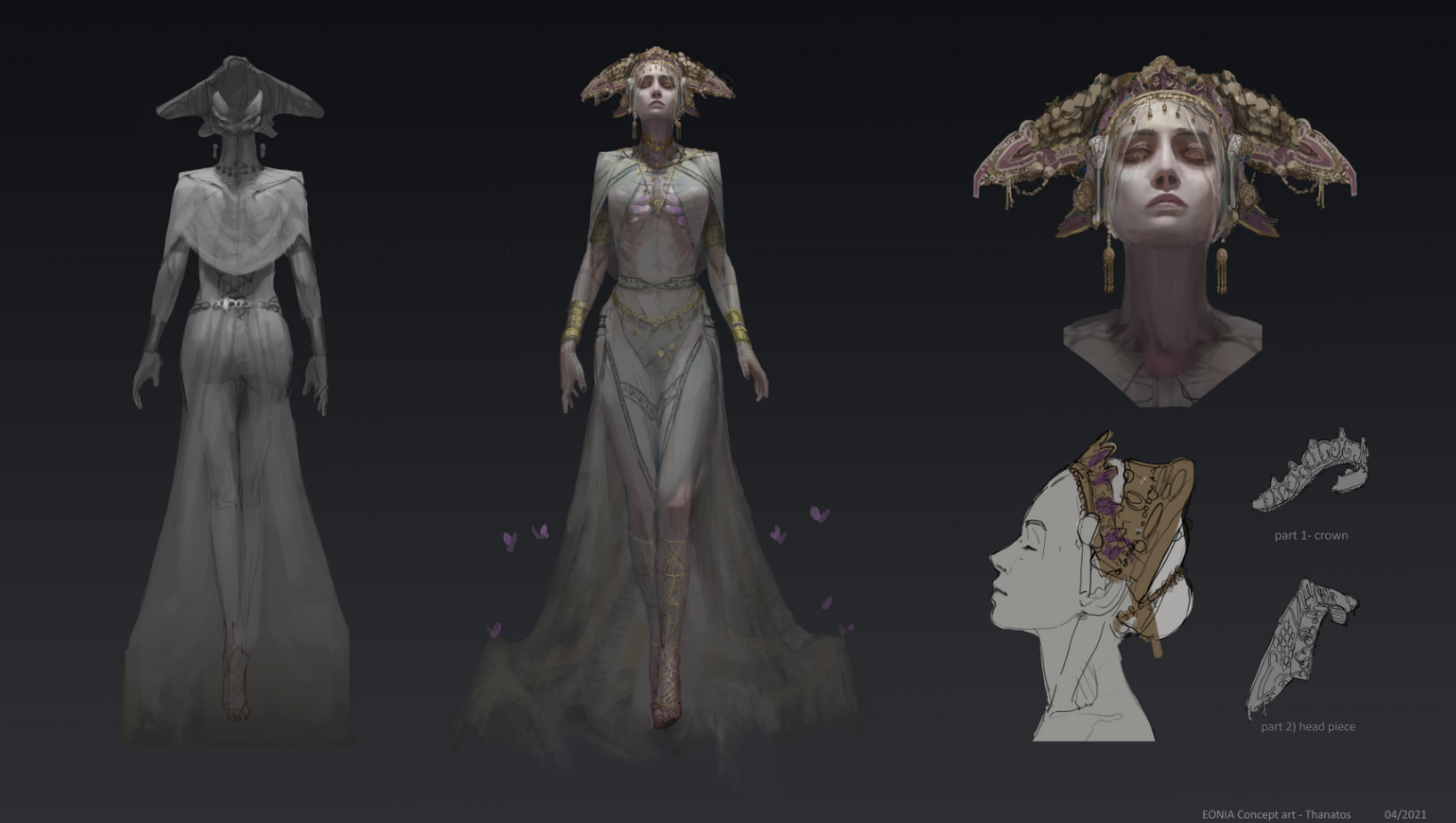 EONIA is a short movie during which Eos, general of his legion, ventures to a foreign planet in order to resurect Thanatos and implore her help for the war. The mix of ancient greek shape language and science fiction was very compeling to work on.